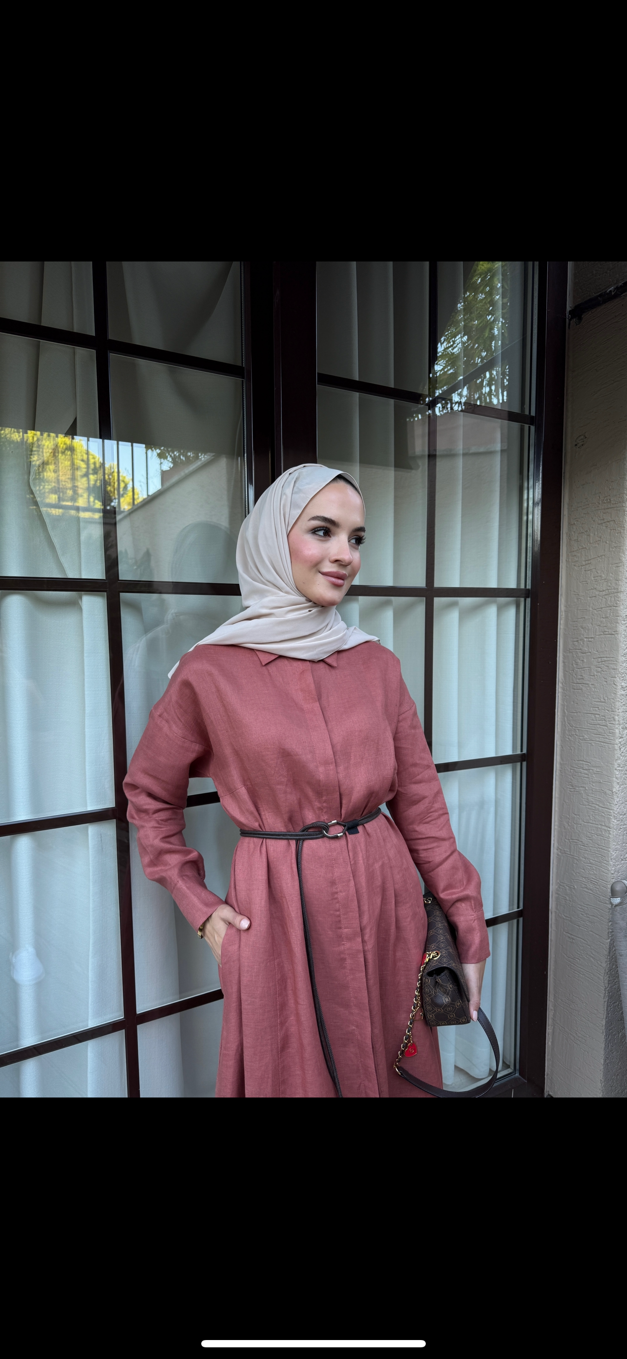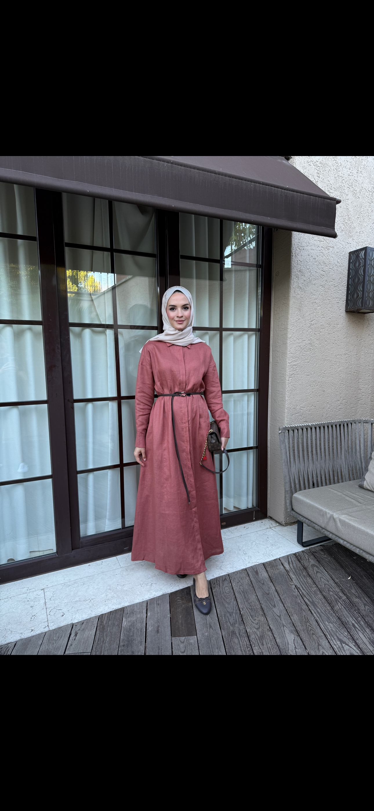 %100 keten kumaştan üretilmiştir. Boy 139 cm. 1 ve 2 beden şeklindedir.